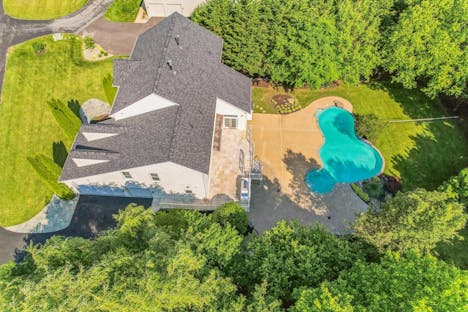 The highlight of the outdoor space is the magnificent pool, inviting you to take a refreshing dip on hot summer days. Surrounding the pool, a stone-paved patio sets the stage for unforgettable outdoor gatherings. And there's more! An enchanting outdoor fireplace adds a touch of warmth and charm, creating the perfect ambiance for cozy evenings under the starlit sky.