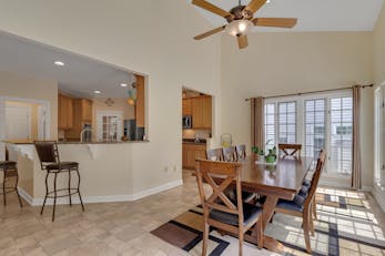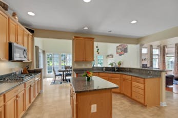 The heart of this magnificent residence is the gourmet eat-in kitchen, where culinary dreams come true. Adorned with gleaming granite countertops, high-end stainless-steel appliances, and a convenient kitchen island, this space is as functional as it is beautiful. 42" cabinets offer ample storage, while a sunlit breakfast area provides the perfect spot to enjoy your morning coffee.