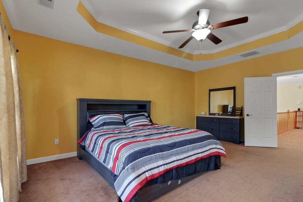 The master suite is a true sanctuary, featuring a tray ceiling, a generously sized walk-in closet, and a master bath that boasts a double vanity and a sumptuous soaking tub. Three additional spacious bedrooms provide ample space for family and guests, ensuring everyone enjoys their own private retreat.