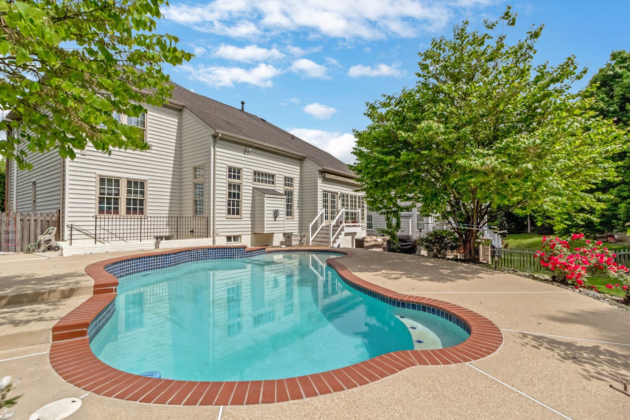 The highlight of the outdoor space is the magnificent pool, inviting you to take a refreshing dip on hot summer days. Surrounding the pool, a stone-paved patio sets the stage for unforgettable outdoor gatherings. And there's more! An enchanting outdoor fireplace adds a touch of warmth and charm, creating the perfect ambiance for cozy evenings under the starlit sky.