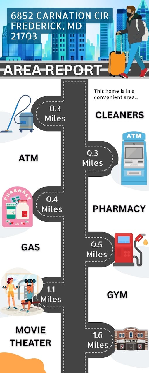 What truly elevates this home is its location. Daily errands, shopping, and dining options are just minutes away, while Frederick’s vibrant downtown scene—known for its restaurants, local businesses, and seasonal events—is easily accessible. Note: Some images have been digitally enhanced using AI for illustration and presentation purposes only.