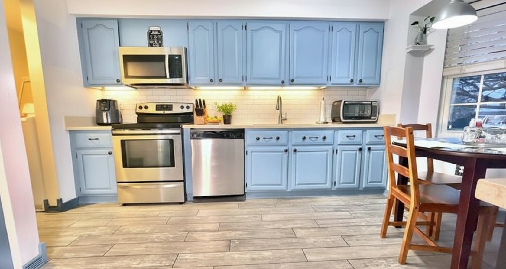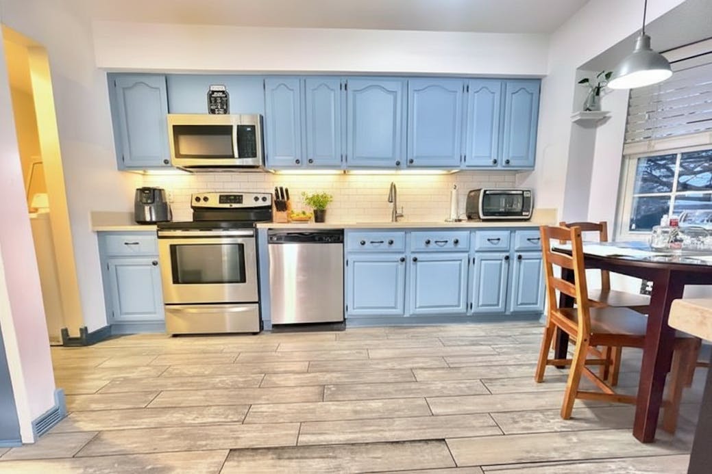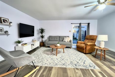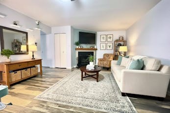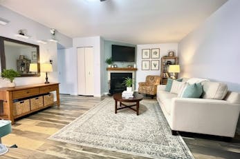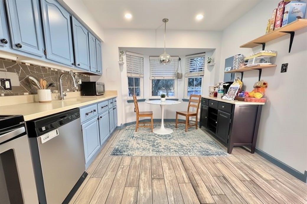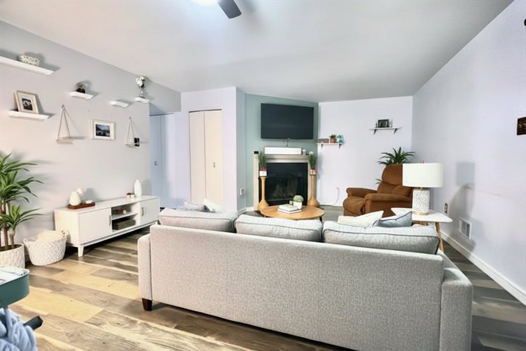 The main level unfolds with an easy, intuitive flow. Natural light moves through the living space, creating a setting that works just as well for quiet evenings as it does for hosting friends. The adjoining dining area anchors the layout, offering a natural gathering point for meals, conversations, and everyday routines.