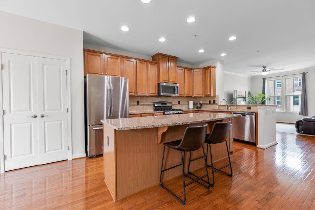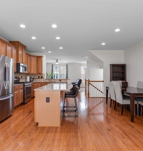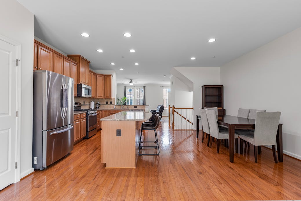 Step into elegance with this stunning open-concept kitchen and dining area featuring gleaming hardwood floors, granite countertops, and stainless steel appliances. The spacious island with bar seating flows seamlessly into a sunlit living space—perfect for entertaining or relaxing with family. A turnkey layout designed for comfort, style, and unforgettable gatherings.
